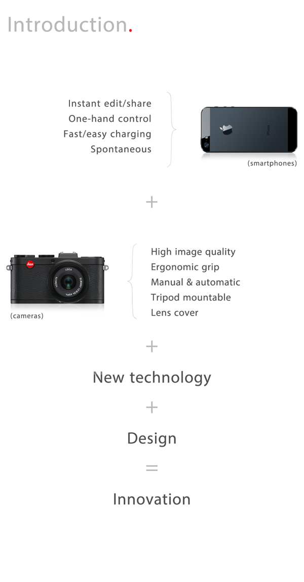 Every day people around the world take millions of pictures. The modern culture of sharing photos with your friends and loved ones has never been bigger. This project is about filling the gap between big cameras with great image quality and smartphone cameras with limited quality/control.